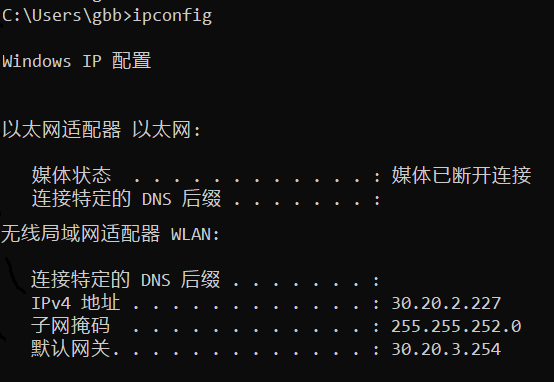 这个地址就是哪张网卡在上网就是哪个地址,拿笔记本为例,通常笔记本有两张网卡,一个是无线一个是带有 RJ45 接口的网卡,使用 Windows Terminal 运行 ipconfig 命令能够查看网卡地址。