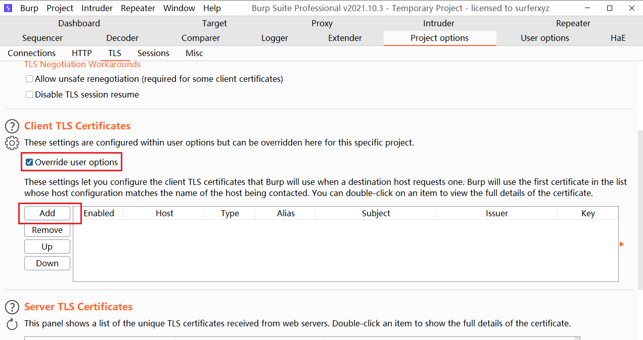 所以没事多注意 BurpSuite 事件日志,遇到上述证书没发送关键字就是双向认证。