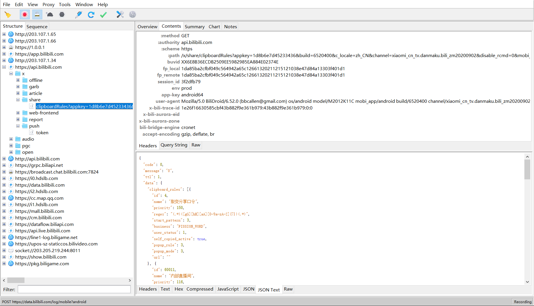 VPN 设置完后,打开哔哩哔哩 App 就能抓到包。