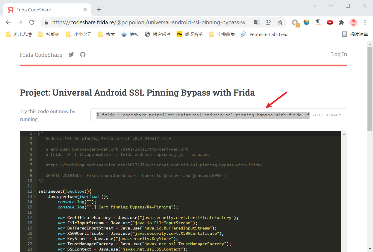 实际绕过可以上 https://codeshare.frida.re/browse 查找各种现成 SSL Pinning Bypass Hook 代码。