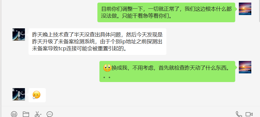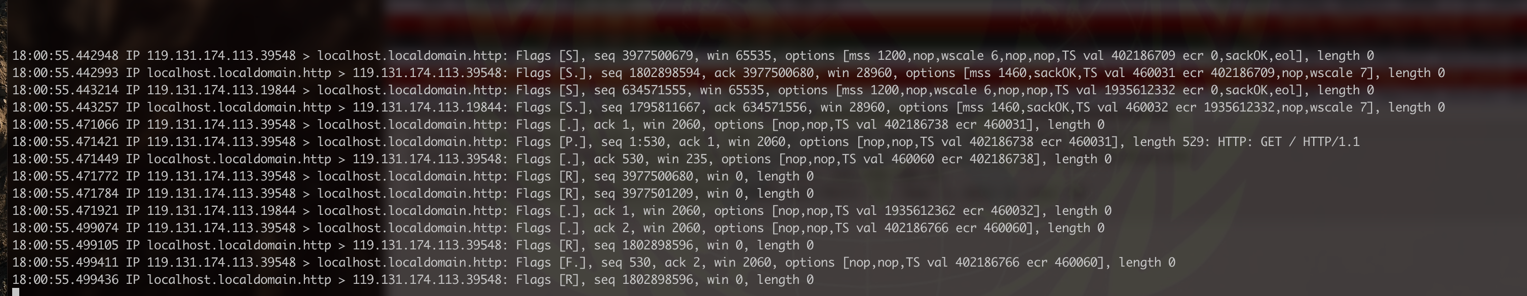 通过抓包得出结论,服务器是能够正常处理http请求且返回了正常的response,就是本地机器却给我安排了rst重置的tcp包。再根据以往的经验如果是运营商安排了应该是会出现rst有了然后再收到html response的结果,而现在是只有rst包,所以应该是机房的防火墙导致。